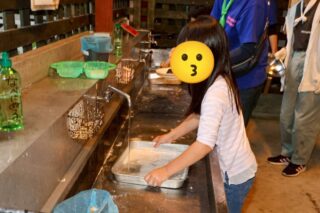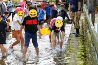 上級生は魚つかみ体験を。