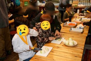 たっぷり遊んだ夕方、夕飯作りをみんなで行います。