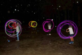 真っ暗になった自然園で学童キャンプのメインイベントとも呼べる6年生によるトーチのお披露会が!