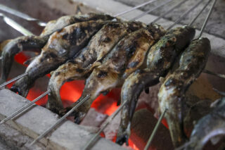自分で捕まえて、自分で下処理し、塩焼きにしていただきます。