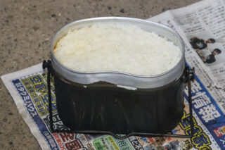 飯盒で炊いたお米はうれしいお焦げ付き!